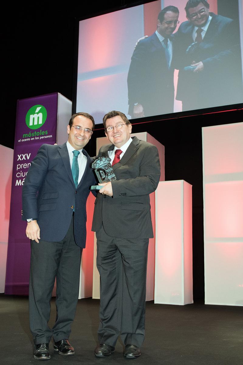 El director general de la ONCE, Ángel Sánchez, fue el encargado de recibir el galardón en representación de la Organización, de manos del alcalde de Móstoles, Daniel Ortiz, en un emotivo acto celebrado en el Teatro del Bosque, con la presentación de la periodista Marta Solano. Asistió también el director de la ONCE en el municipio, José Molina Torres.